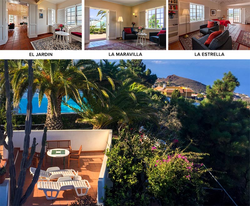 Die gesamte Finca umfasst alle 3 Unterkünfte. Sie ist ideal geeignet für 3 Paare oder eine Familie mit bis zu 8 Personen, die gern zusammen Urlaub machen möchten, aber trotzdem noch einen gewissen Rückzugsraum benötigen. Natürlich können auch 2 Apartments zusammen angemietet werden.
